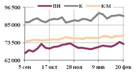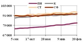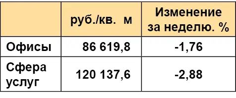 Средние цены предложения на офисные помещения, сфера торговли и услуг