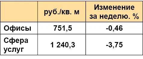 Арендные ставки на офисные помещения, сфера торговли и услуг