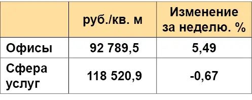 Средние цены предложения на офисные помещения, сфера торговли и услуг