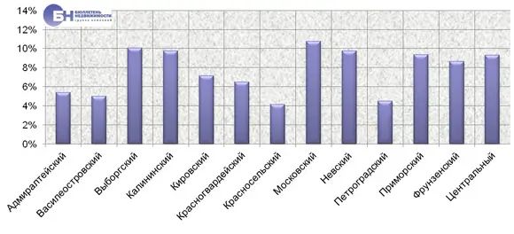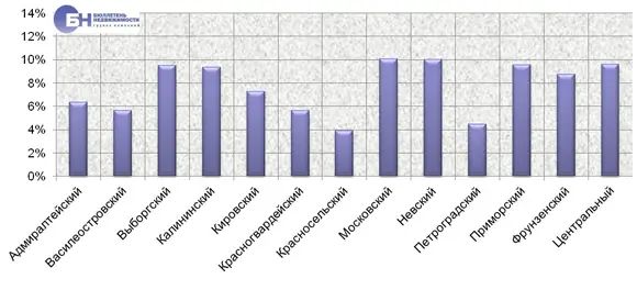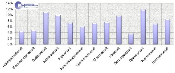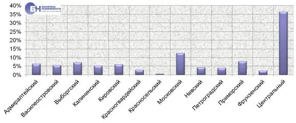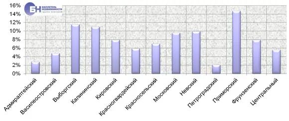 | Структура предложения по районам Петербурга, % от общего объема | |