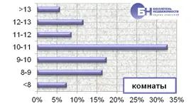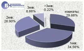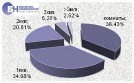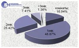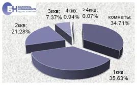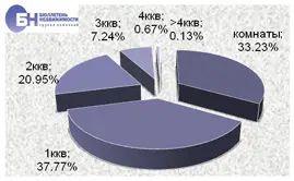 | В структуре предложения на рынке аренды типового жилья по-прежнему преобладают комнаты и однокомнатные квартиры и занимают 33,2% и 37,8% рынка. Двухкомнатные квартиры составляют 21%, доля трехкомнатных квартир не превышает 7,2%. Многокомнатные (от 4 и более комнат) составляют 0,8% от общего объема типовых квартир, предлагаемых в аренду. | |