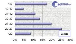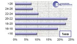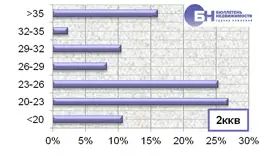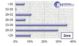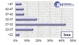 Структура спроса на рынке аренды типового жилья по диапазону цены в марте 2012 года выглядит следующим образом. Максимальное количество запросов о съеме в аренду комнат находится в ценовом диапазоне от 10 тыс. до 11 тыс. руб. в месяц, что занимает 37,3% от всего спроса. Наибольший спрос однокомнатных квартир зафиксирован в диапазоне от 14 тыс. до 22 тыс. руб. в месяц, что составляет 76,1% от всех запросов по указанному типу квартир. В сегменте двухкомнатных квартир максимальное количество заявок приходится на диапазоны от 23 тыс. до 26 тыс. руб. и от 20 тыс. до 23 тыс. руб. в месяц, что занимает 35,8% и 29,3% от всего объема. По трехкомнатным квартирам максимальное число спроса находится в диапазоне цен от 27 до 32 тыс. руб. в месяц, что составляет 43,5% от всех заявок на съем жилья по данному типу квартир. |