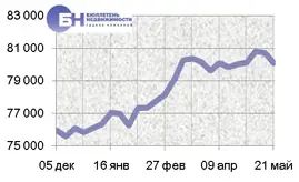 За минувшую неделю процент изменения средней цены предложения на рынке новостроек в рублевом эквиваленте составил минус 0,8%, это 625,1 руб. с одного квадратного метра. Показатель средней цены предложения за неделю с 14 мая по 21 мая 2012 года составил 80,1 тыс. руб./кв. м. Цена предложения в долларах составила 2,6 тыс. за квадратный метр, в евро – 2 тыс.