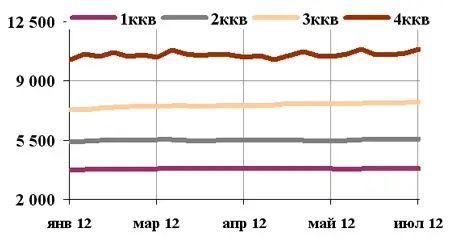 Так за I квартал 2012 года цены на жилье в Петербурге выросли на 3,56%. В период с апреля по конец июня цены на «вторичку» выросли на 2% (с начала года – на 5,56%). К концу II квартала средняя цена предложения одного квадратного метра на вторичном рынке составила 93,2 тыс. руб. Однокомнатные квартиры в Петербурге в это время предлагались в среднем за 3,8 млн руб., двухкомнатные – за 5,4 млн руб., трехкомнатные – за 7,6 млн руб.