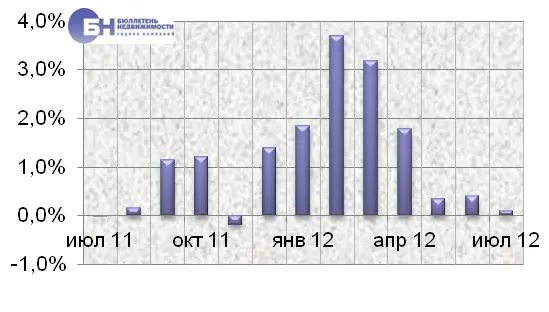 Самыми дорогими по стоимости квадратного метра на рынке квартир по-прежнему остаются однокомнатные квартиры как в панельных, так и в кирпичных домах. Цена предложения в июле 2012 года составила в среднем 50 тыс. руб. за кв. м. Самыми дешевыми вариантами по цене квадратного метра остаются трехкомнатные квартиры в домах панельной постройки. На конец июля 2012 года средняя цена предложения составила 44,5 тыс. руб. за кв. м жилья.