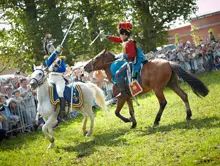 Несмотря на жаркую погоду, зрители смогли погрузиться в атмосферу событий величайших в истории сражений, почувствовать в воздухе запах пороха, насладиться настоящим конным шоу и костюмированной реконструкцией боевых действий на тему войны с армией Наполеона Бонапарта.