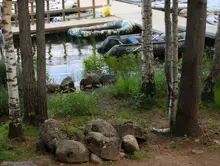 Повернув по указателю, мы оказались перед охраняемым шлагбаумом, от которого до поселка ехать еще километра три – по территории военного полигона № 56 «Далама». Встретить тут танк или самоходку, конечно, уже невозможно – значительная часть полигона отдана под дачное строительство. О прошлом напоминает только встретившийся нам по пути «вододром» – озеро глубиной около семи метров, использовавшееся для обкатки военных машин-амфибий.