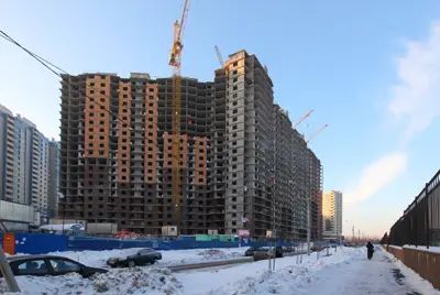 Жилой комплекс высотой 21-25 этажей строят довольно активно – к настоящему времени возведены монолитные конструкции всех этажей, рабочие утепляют стены и облицовывают их кирпичом. Сдать объект планировали в конце этого года, но в сентябре у застройщика закончилось разрешение на строительство – компании пришлось три месяца добиваться его продления у городских властей. В ноябре вышло соответствующее постановление правительства о пролонгации сроков – до декабря 2013 года.