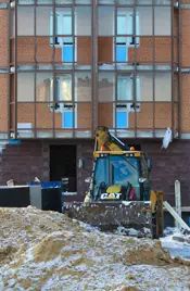 Работы на стройке идут очень активно. Во время нашего посещения стоял двадцатиградусный мороз – тем не менее на площадке трудились несколько десятков рабочих, функционировали сразу семь башенных кранов.
