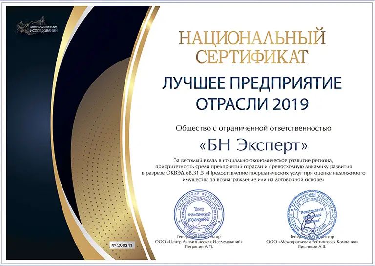 Национальный сертификат «Лучшее предприятие отрасли» подтверждает надежность компании, приоритетность услуг предприятия среди конкурентов и престижность работодателя. В рамках условий номинации каждая организация проходит дополнительный экспертный, юридический и информационно-репутационный анализ. К номинации могут быть представлены приоритетные и лучшие компании отрасли, а также организации социально важного значения.
