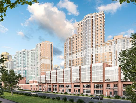 Напомним, жилой комплекс расположен в Приморском районе Петербурга по соседству с Юнтоловским лесопарком. Два корпуса высотой 10-13 этажей объединены торговой галереей на нижнем ярусе.