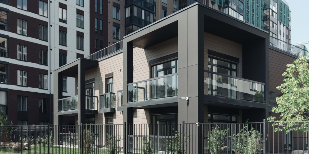 На первом и втором этажах есть открытые террасы, выходящие на набережную Охты, благоустройство которой полностью завершится к концу 2022 года. С других сторон дом окружает двор пятой очереди Magnifika Residence с деревьями, зелеными холмами, площадками для отдыха, общения и детских игр.