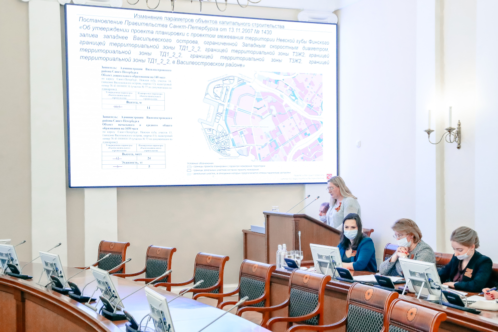 Согласно изменениям, этажность новой школы на 1650 мест на намывных территориях Васильевского острова будет увеличена с трёх до пяти этажей. С 10 до 14 метров увеличится высота здания детского сада, который будет построен на намыве. Он сможет принять 140 воспитанников.