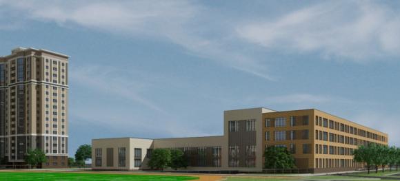 Разновысотное здание школы (1-4 этажа) появится на территории строящегося жилого комплекса «Октябрьская набережная».