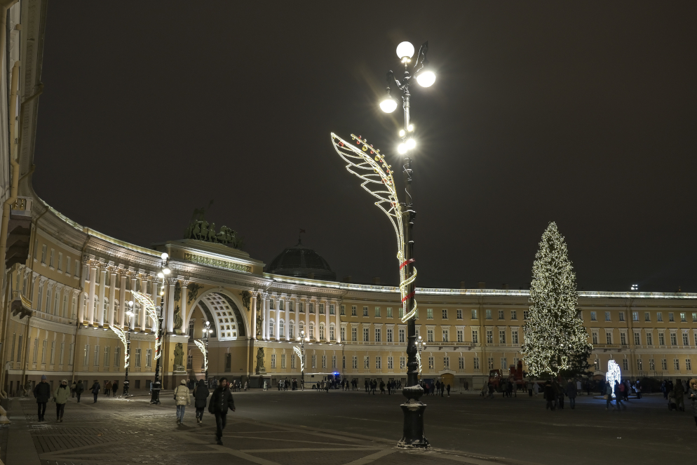 Впервые электрические фонари на Дворцовой площади появились в 1960-е годы, в 2000-х годах система освещения была модернизирована. Тогда установили новые опоры и светильники.