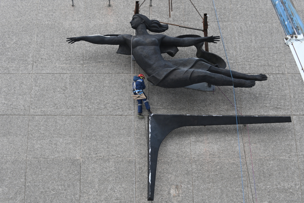 Скульптура была выполнена и установлена на фасад здания Ленинградского объединения электронного приборостроения «Светлана» в 1976 году скульптором Валентином Козенюком. Теперь она будет установлена на административное здание завода в 200 м от Светлановской площади, где и отметит свое 46-летие.