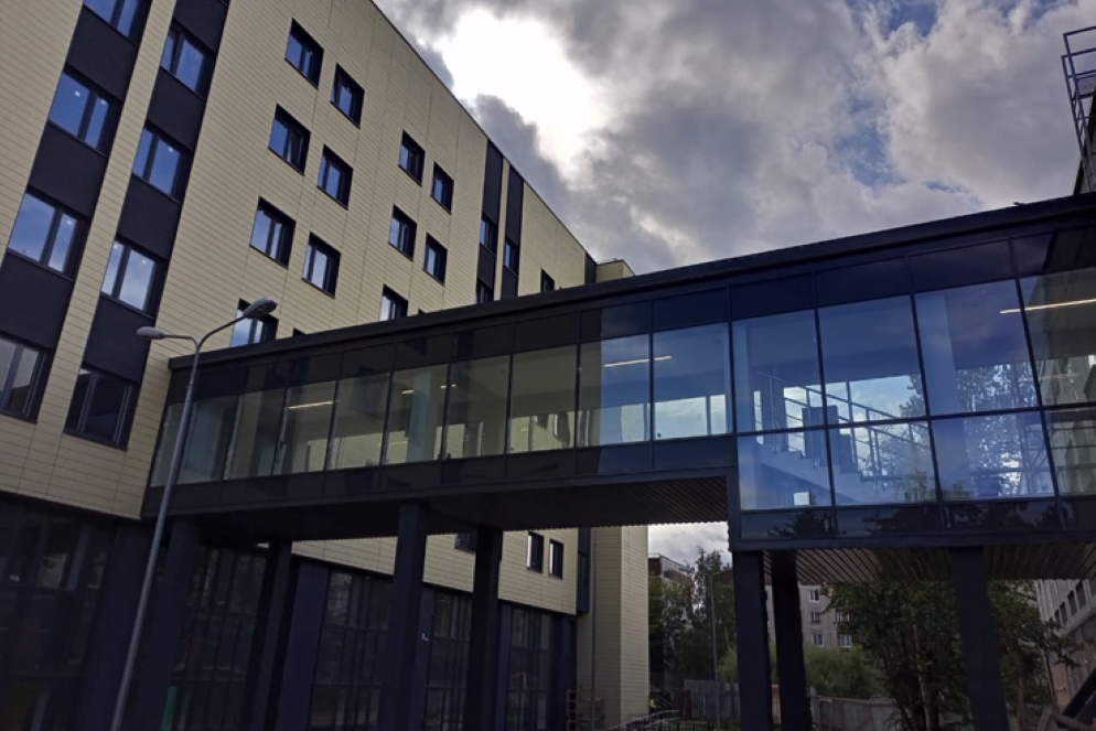 Учащиеся будут проживать по двое в блоках, состоящих из 2-3 комнат и помещений общего пользования. На первом этаже здания запроектированы медицинский кабинет, хозяйственные и спортивные помещения и залы. В коридорах на каждом этаже – кухня.