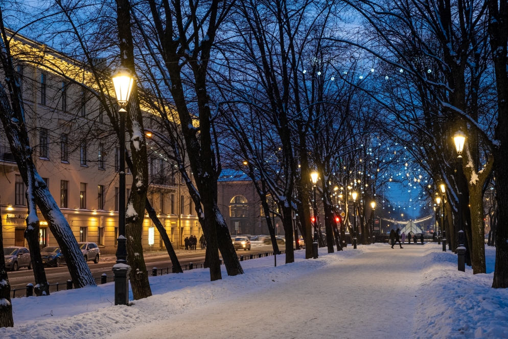 Раньше пешеходное пространство, соединяющее площади Труда и Декабристов, оставалось темным по вечерам. Теперь одно из самых посещаемых мест в центре Санкт‑Петербурга осветили 56 светодиодных фонарей. Они установлены на декоративных чугунных опорах. Кабельную линию проложили в земле.