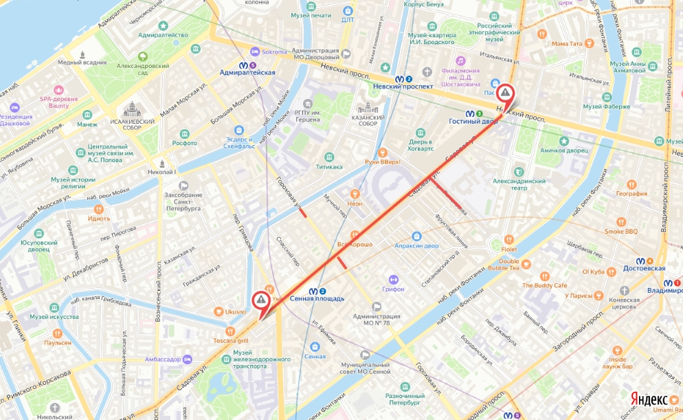 В связи с проведением ремонта трамвайных путей с 30 марта по 12 апреля ограничивается движение транспорта по Садовой улице от Гороховой улицы до Невского проспекта, включая перекрестки с Банковским переулком и переулком Крылова. Кроме того, с 30 марта по 7 июня закрывается движение транспорта по улице Ломоносова от Садовой улицы до Курятной линии.