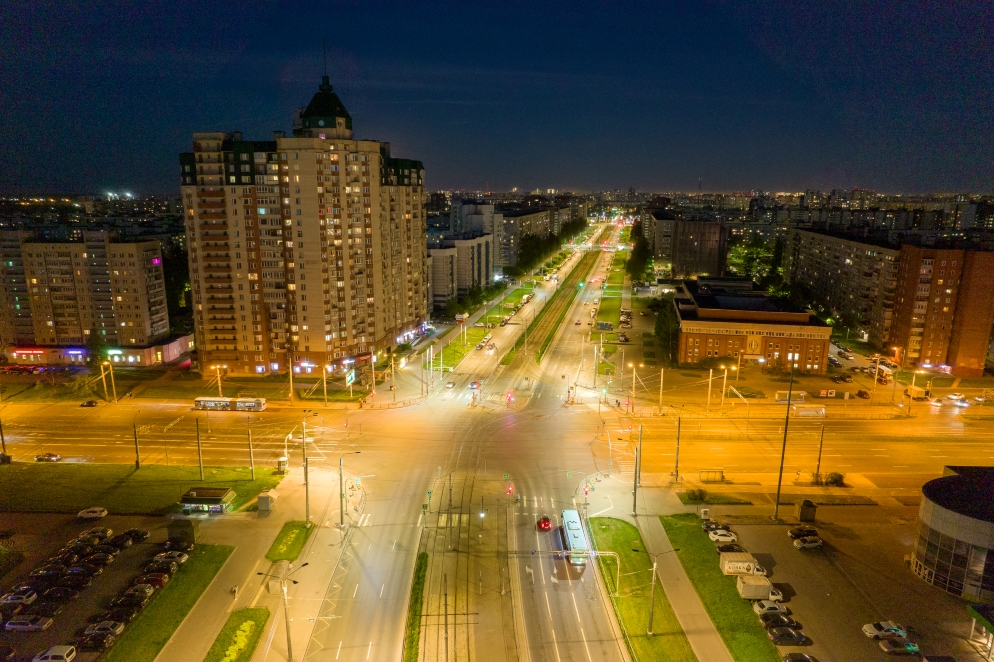 На всем протяжении трехкилометровой магистрали СПб ГБУ «Ленсвет» выполнена замена натриевых светильников на светодиодные.