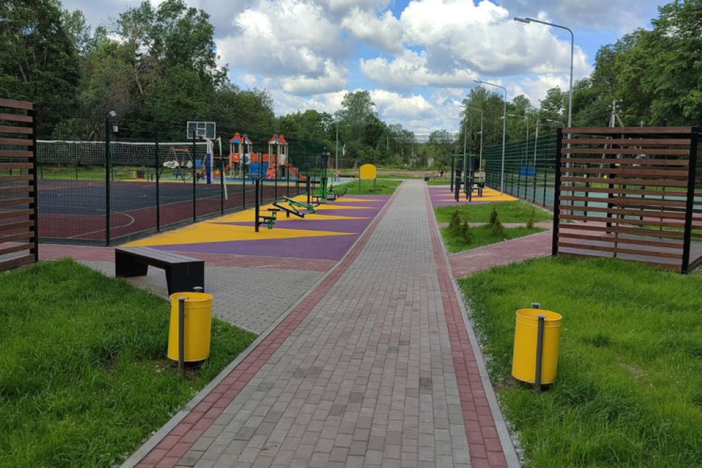 В поселке Приозерном Лужского района также создано благоустроенное пространство для жителей любого возраста: с газонами, детским городком, малыми формами на детской площадке, скамейками, беседками, современным освещением и оборудованной парковкой.