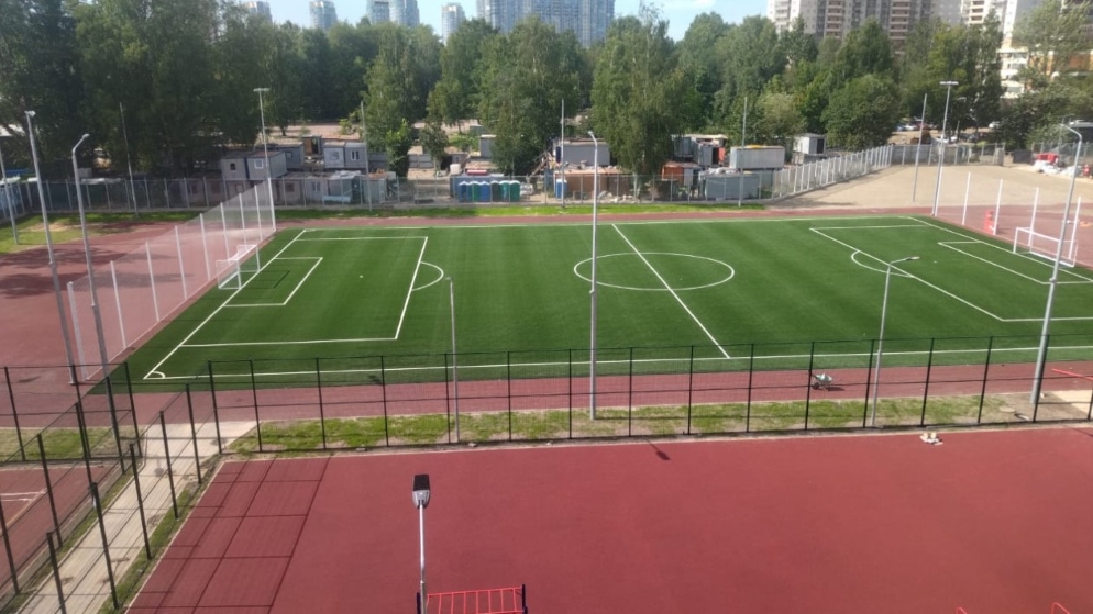 На территории школы расположена физкультурно-спортивная зона с площадкой для игры в баскетбол и волейбол, футбольным полем, теннисным кортом и площадкой для легкоатлетических видов спорта. Также предусмотрена зона отдыха с озеленением и газоном, с площадками, как для подвижных игр, так и для тихого отдыха.