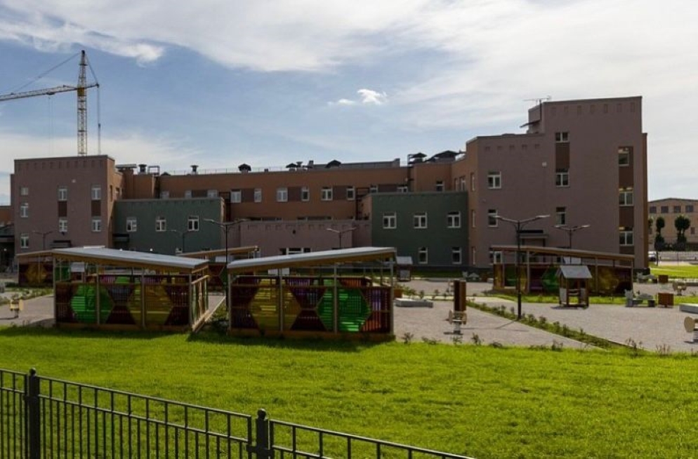 Трехэтажное дошкольное учреждение площадью 5,48 тыс. кв. м с подземным этажом расположено на проспекте Большевиков, на территории жилого комплекса «Октябрьская набережная».