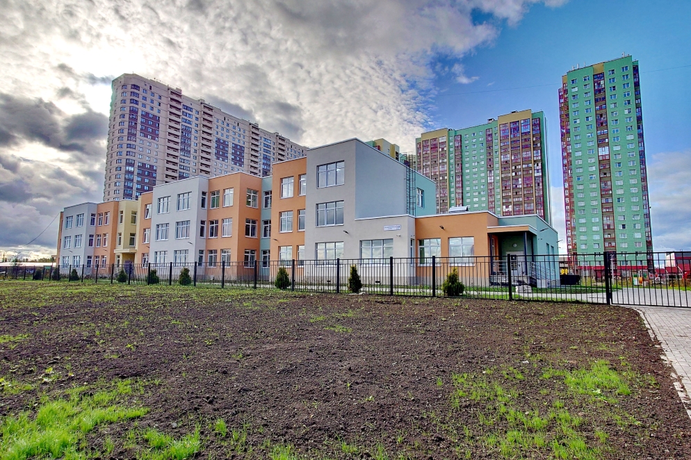 Здание нового детского сада – разновысотное: от одного до четырёх этажей с учётом подвала. На прилегающей территории разместились детские площадки, площадка для занятий спортом на свежем воздухе и велопарковка. Открытие запланировано на 2025 год.