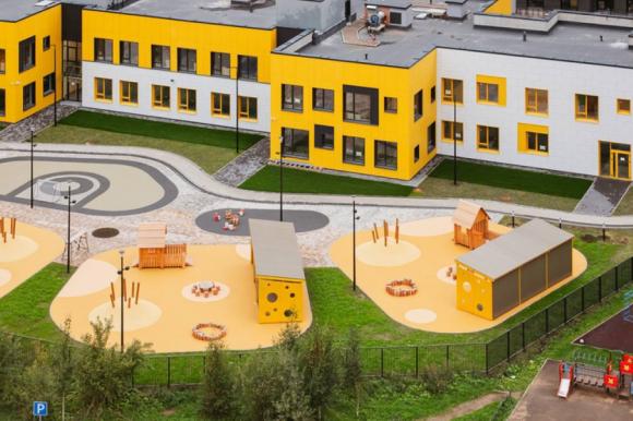 Во дворе девелопер благоустроил площадку для массовых мероприятий и места для отдыха. Рядом разместились футбольное поле, беговые дорожки, а также спортплощадки для волейбола и баскетбола.