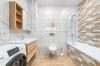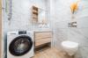 В просторной и светлой ванной комнате есть полотенцесушитель, гигиенический душ, большая ванна, стиральная машина и места для хранения. Зона прихожей также оборудована всем необходимым. Домофон с видеонаблюдением, его можно подключить к своему смартфону.