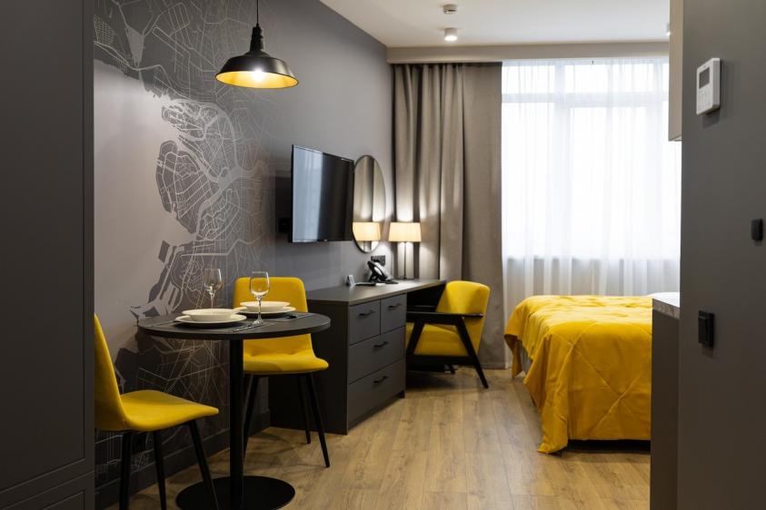 Современные полностью меблированные апартаменты сочетают в себе стильный дизайн, функциональность и всё необходимое для жизни.