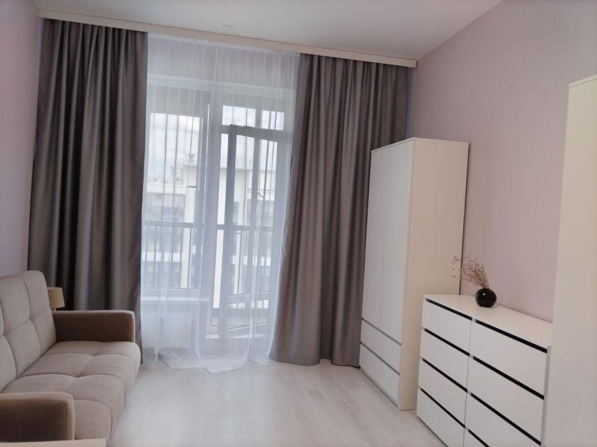 Студия в ЖК Чистое Небо,в обжитом районе с развитой инфраструктурой.Квартира в очень хорошем состоянии.Есть все необходимое для проживания.Большой застекленный балкон 4,8 м.Потолки 3 м.