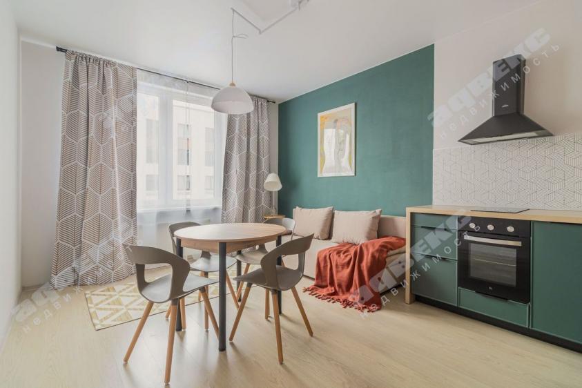 - Большая кухня-гостиная 16 кв. м оборудована новой современной мебелью: кухонный гарнитур с варочной панелью, встроенными духовым шкафом, холодильником, стиральной машиной, вытяжка. В зоне отдыха -новый раскладной диван, который также может использоваться как полноценное спальное место, обеденный стол со стульями.