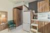Дизайнерский ремонт с зонированием на спальню, кабинет, зону кухни с дополнительным спальным местом для двоих на антресольной полке. Есть посуда, одеяла, подушки, все необходимое для проживание.