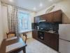 •на кухне холодильник, варочная панель, вытяжка, микроволновая печь, есть необходимая посуда-чайник, кастрюли, столовая посуда.