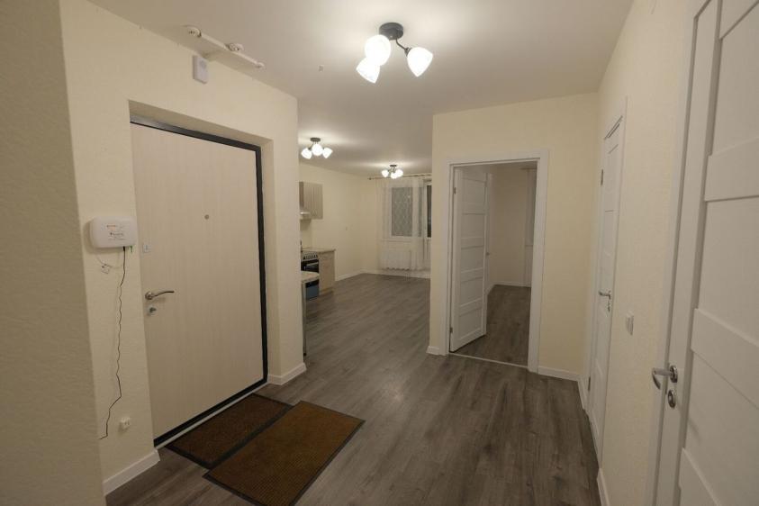Удобная планировка: две комнаты одинакового размера и кухня-гостиная 17 кв.м. Квартира двухсторонняя, окна выходят во двор (юго-запад и северо-восток). Застекленный балкон. Свежий ремонт. Без мебели в комнатах. Кухонный гарнитур. Следующая бытовая техника: электрическая плита, духовка, вытяжка, холодильник, стиральная машина.