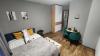 В квартире есть всё необходимое для комфортного проживания: мебель (двуспальная кровать с подъёмным механизмом и местом для хранения, шкаф для одежды, обеденный стол и стулья, ТВ тумба, кухонные шкафы, прикроватный столик, кухонная утварь) и техника (холодильник, стиральная машина, микроволновая печь).
