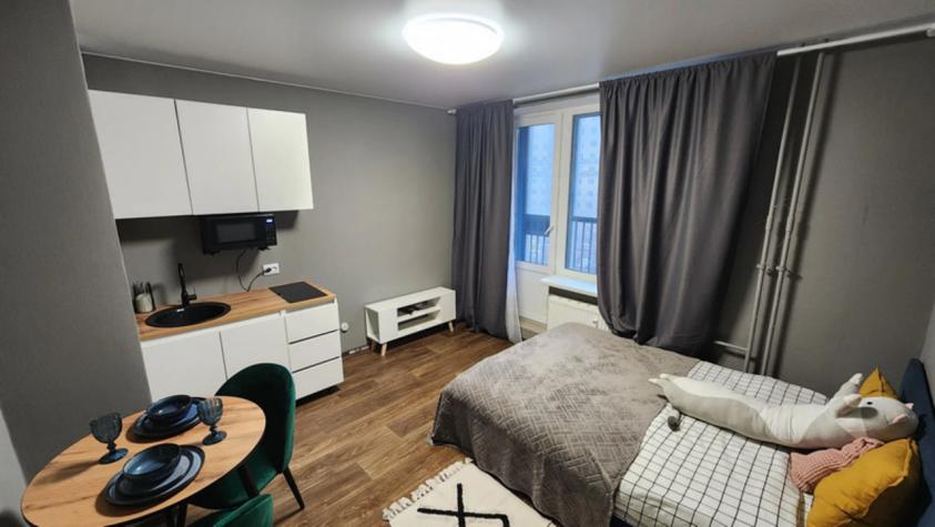 Сдаётся впервые хорошо оборудованная с отличным ремонтом студия в 15 минутах пешком от станции метро / жд станции Девяткино в доме с закрытой территорией (вход и въезд во двор только по электронному ключу) в жилом комплексе Территория.
