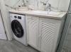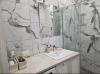 Санузел оснащен душевой кабиной, стиральной машиной, туалетом, раковиной и зеркалом с подсветкой. Имеется тёплая стена для полотенец и халатов.