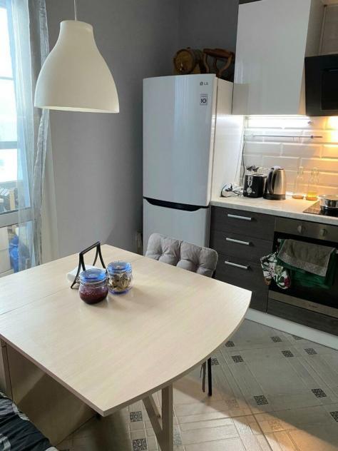 В квартире имеется две вместительные гардеробные, дополнительно в комнате сделано зонирование (визуальное отделение спальной зоны от гостиной), сделан хороший, качественный ремонт(жили сами, делали для себя). Кухня оборудована всем необходимым: холодильник, духовой шкаф, варочная панель, микроволновая печь, чайник, установлен новый дорогой кухонный гарнитур имеется барная стойка и выход на большую застекленную лоджию.