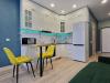 Просторная светлая квартира в новом доме 2022 года постройки. Комната 16,3 кв.м. с выделенной гардеробной и выходом на собственную террасу 12кв.м., кухня-гостинная 16 кв.м. В квартире есть вся необходимая мебель и техника: в комнате 2-х спальная кровать, кондиционер, на кухне новый кухонный гарнитур, встроенная техника: вытяжка, варочная панель, духовой шкаф, микроволновая печь, большой холодильник, электрический чайник. Санузел совмещенный, с душевой кабиной и стиральной машиной.