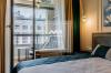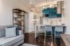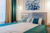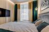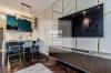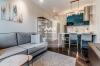 В просторной кухне-гостинной установлена техника Smeg, сочетающая итальянский дизайн и надежность. В интерьере использованы только дорогие материалы, создающие атмосферу уюта. Панорамные окна с потрясающим видом. Продуманная система освещения. В спальной комнате расположилась комфортная двуспальная кровать с матрасом togas, телевизор, система хранения и шторы blackout, что особенно важно в период белых ночей. Просторный санузел выполнен с применением качественной сантехники и отделки.