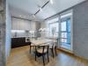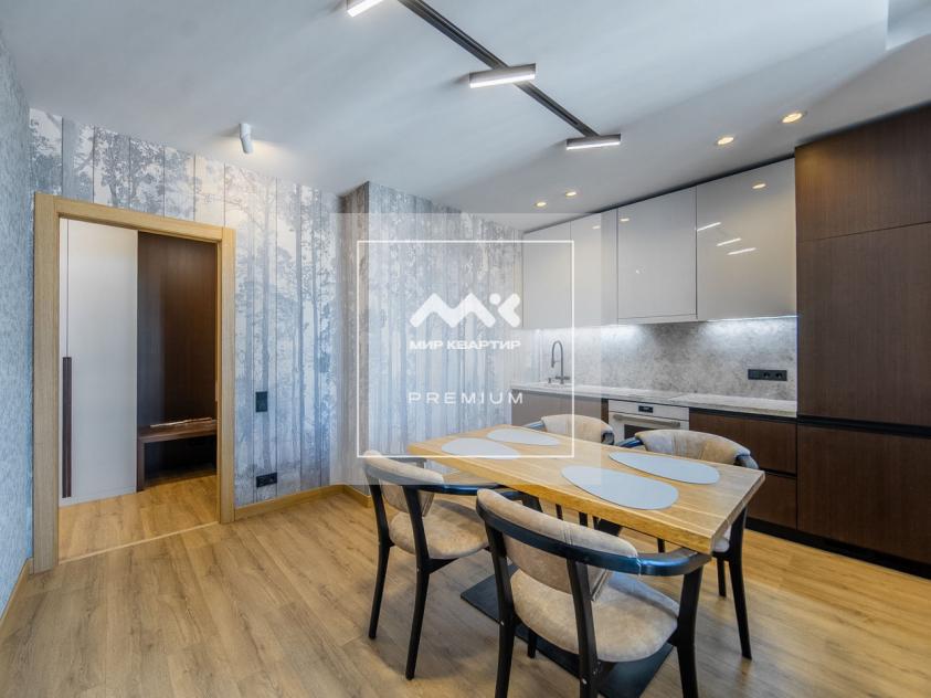 Квартира с 3 изолированными комнатами: видовая гостиная, детская комната, основная спальня. Кухня, оборудованная всей необходимой техникой, также имеет выход на панорамный застекленный балкон. 2 санузла: гостевой и основной с ванной.