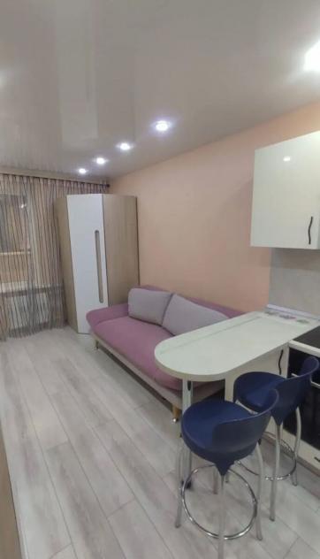 Студия с застекленной лождией и прекрасным ремонтом во всех помещениях расположена на 18 этаже, из окна открывается замечательный вид на улицу.