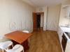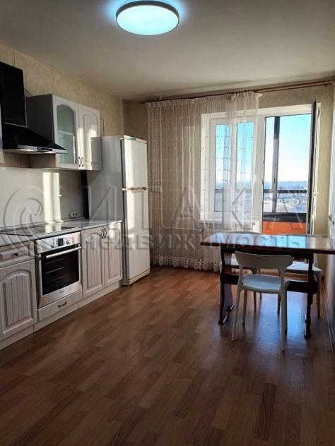 На кухне- мебельный гарнитур с керамической варочной поверхностью и духовым шкафом. Есть электрическая вытяжка, двухкамерный холодильник, электрический чайник, стол, стулья, выход на застекленный балкон 3 кв.м.
