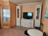 Внутри квартиры установлена необходимая мебель в комнатах и на кухне. Техническое оснащение включает холодильник, стиральную машину, посудомоечную машину, электрическую плиту, микроволновую печь и телевизор. Имеется подключение к интернету. Квартира требует косметического ремонта.