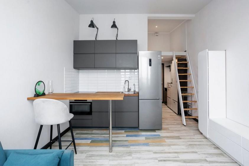 Квартира находится в мансарде. Высота потолков больше 4 метров.
