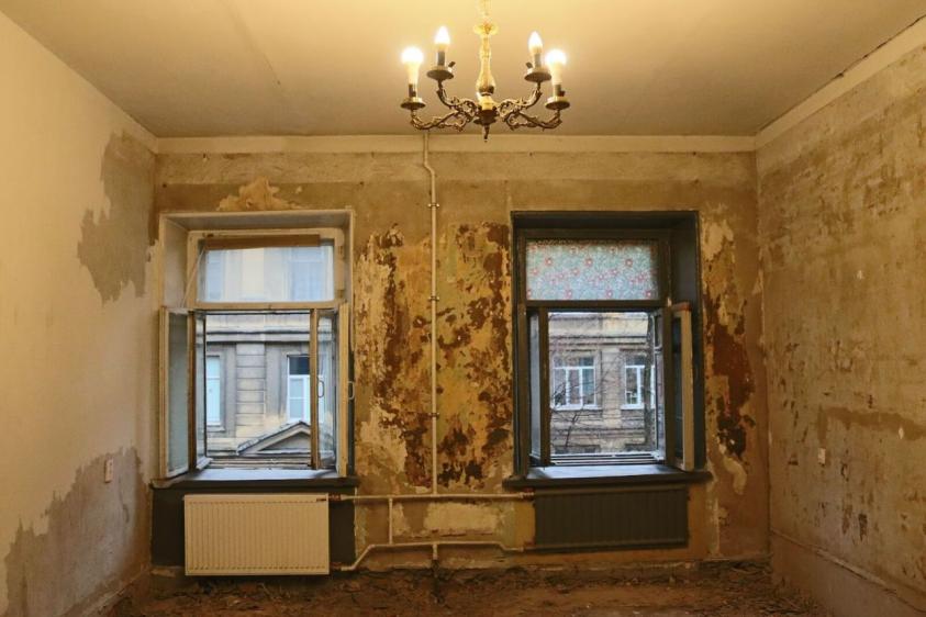 Квартира подготовлена под ремонт, в частности в комнатах демонтированы полы.