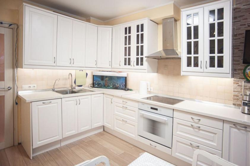 Остается мебель - встроенная кухня, откидная шкаф - кровать трансформер.