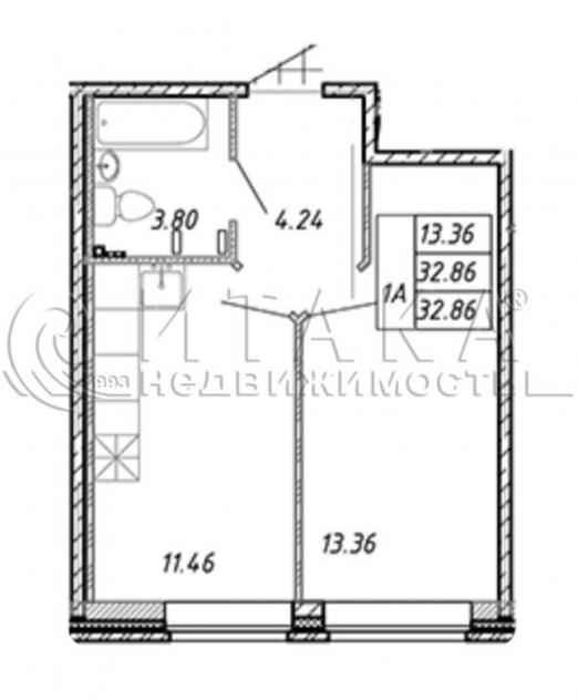 • Площадь: 32.86 кв.м. (общая)